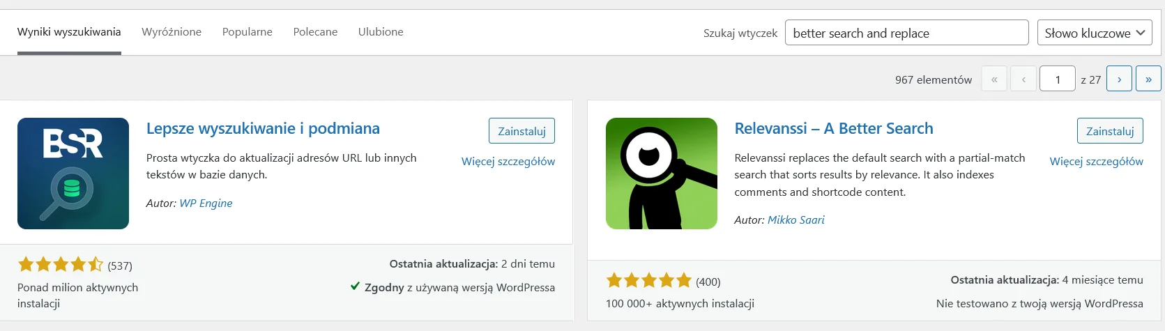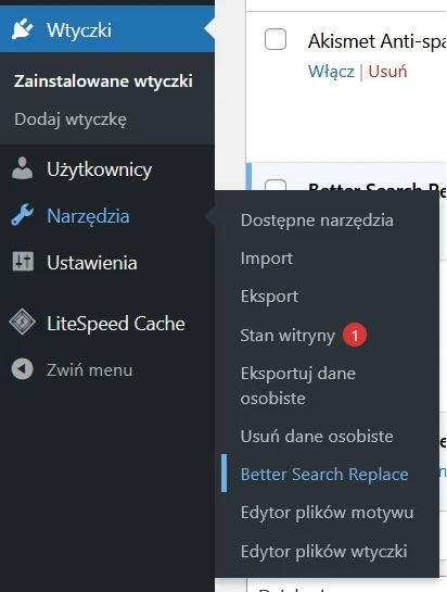 Wariant 1: zmiana z poziomu wtyczki Better Search and Replace.