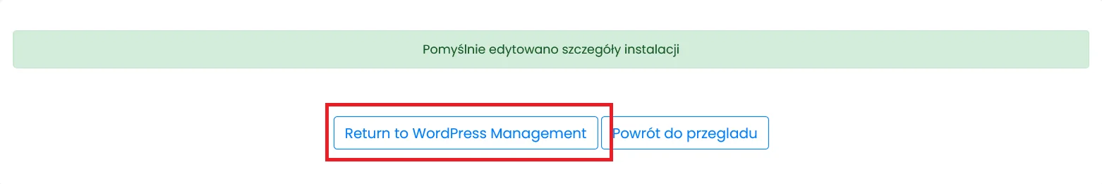 Gotowe. Ewentualne rekordy zawierające poprzedni adres witryny zostały zmienione pomyślnie. Potwierdzeniem będzie komunikat podobny do tego: